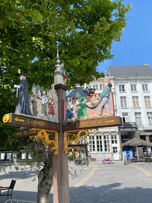 Dalle indicazioni in legno con le raffigurazioni, alla cattedrale così maestosa, alle sue case a graticcio, ai localini con la gente fuori a far colazione in una bella mattinata di sole .. insomma, Mechelen mi ha già conquistata!