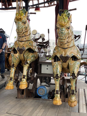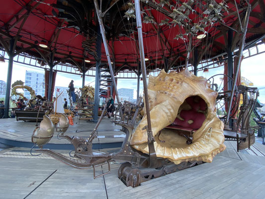 L’attrazione più celebre è il gigantesco Elefante meccanico alto 12 metri, che trasporta i visitatori lungo i moli dove si trovano altre meravigliose giostre per grandi e piccini, tutte con questo stesso fascino futuristico, come le giostre dei mondi di Jules Verne, che possono essere manovrate dall'interno.