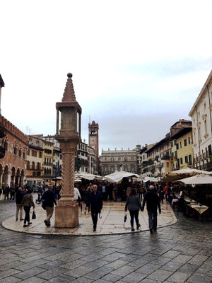 Quest’ultima era un tempo un foro romano ed oggi invece ospita un mercato e la Torre dei Lamberti, alta 84 mt, che viene illuminata “ad hoc” nel periodo di San Valentino.